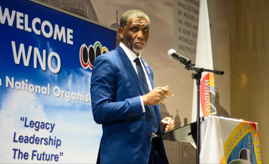 Mike Tapp and Bishop Desmond Jadoo at the Windrush National Organisation annual conference Bishop Desmond Jadoo - Chair of the Windrush National Organisation (WNO), presented Mike Tapp MP - Minister of State for Migration and Citizenship (right) with a Windrush borad game at the WNO's annual conference. Image credit: George Brown