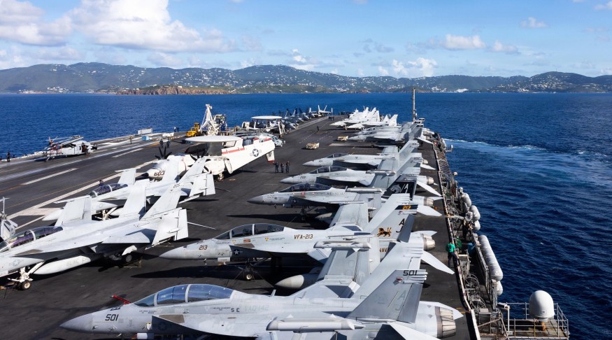 USS Gerald R. Ford Aircraft Carrier Departs St. Thomas U.S. Virgin Islands Amid Rising Tensions with Venezuela